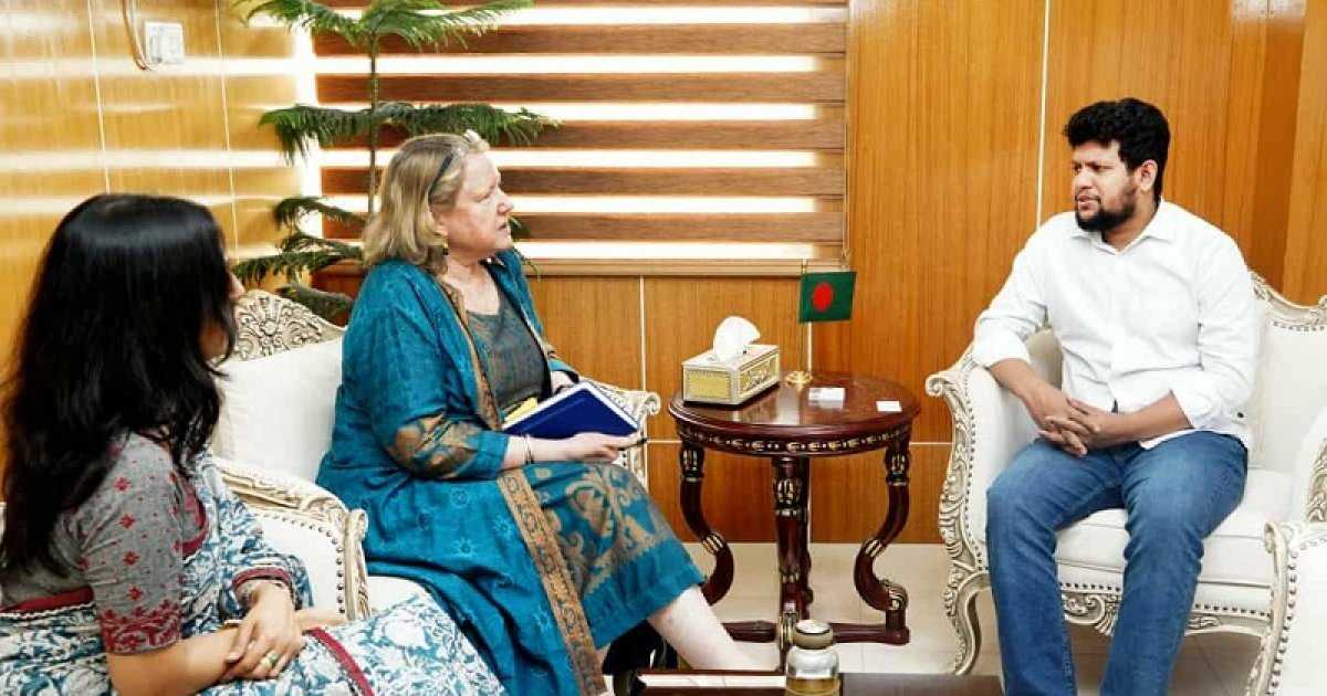 তথ্য ও সম্প্রচার উপদেষ্টা মো. মাহফুজ আলমের সঙ্গে সাক্ষাৎ করেছেন ইউনেস্কোর বাংলাদেশ প্রতিনিধি সুসান ভাইজ।
