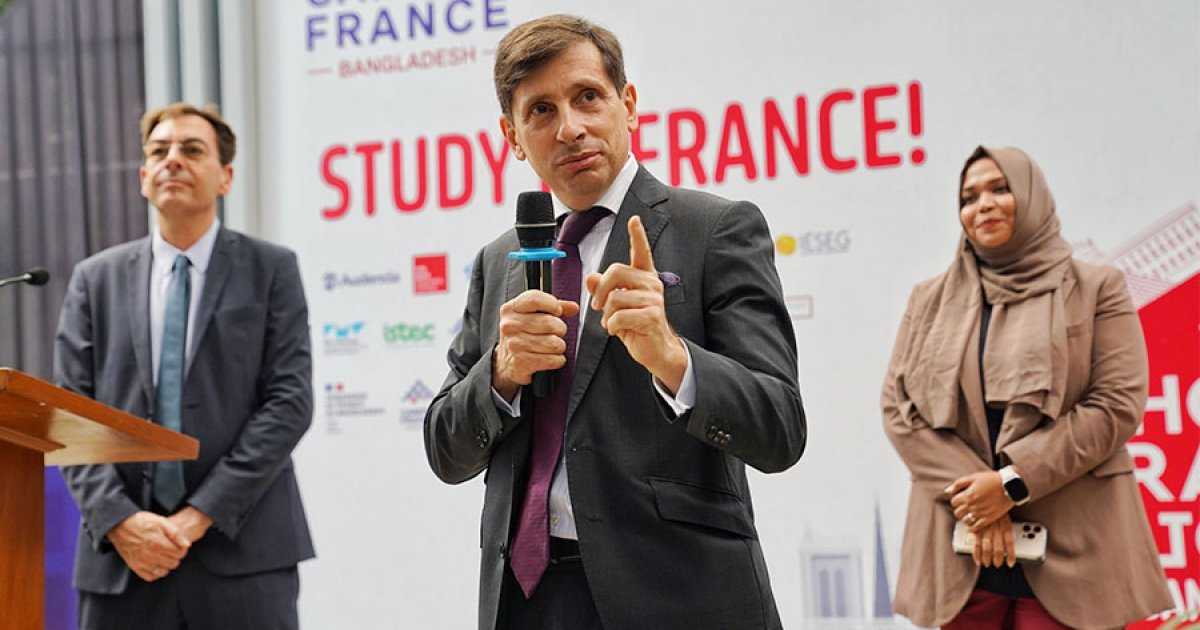 বাংলাদেশে নিযুক্ত ফ্রান্সের রাষ্ট্রদূত এম জ্যঁ-মার্ক সেরে-শার্লেট বিদেশে পড়াশোনা করতে ইচ্ছুক বাংলাদেশি শিক্ষার্থীদের ফ্রান্সকে উচ্চমানের শিক্ষা, সাশ্রয়ী মূল্যের টিউশন ফি এবং একটি প্রাণবন্ত আন্তর্জাতিক পরিবেশ প্রদানকারী গন্তব্য হিসাবে বিবেচনা করার আহ্বান জানিয়েছেন।