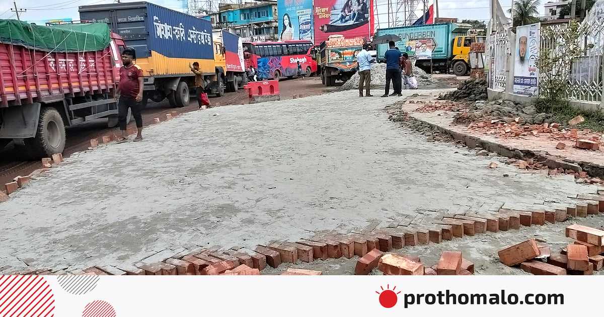 গত শনিবার সন্ধ্যা থেকে রোববার রাত পর্যন্ত এবং সোমবার সকাল পর্যন্ত সরেজমিনে দেখা গেছে, গোলচত্বর এলাকায় তিন স্তরে ইট ও বালু বিছানো হয়েছে। রোববার রাত পর্যন্ত সওজের ঊর্ধ্বতন কর্মকর্তারা সেখানে উপস্থিত ছিলেন, তবে সোমবার সকালে কাউকে পাওয়া যায়নি। সড়কের বিভিন্ন অংশে ইট ও বালুর স্তূপ থাকায় যানজট সৃষ্টি হয়েছে। এতে ঢাকা থেকে ব্রাহ্মণবাড়িয়ামুখী যানবাহনগুলো ভোগান্তিতে পড়ছে। সওজের উপবিভাগীয় প্রকৌশলী রোকন উদ্দিন প্রথম আলোকে বলেন, ‘ঊর্ধ্বতন কর্তৃপক্ষের নির্দেশে জনদুর্ভোগ লাঘবে আমরা তিন স্তরের ইট বিছানোর কাজ করছি।’