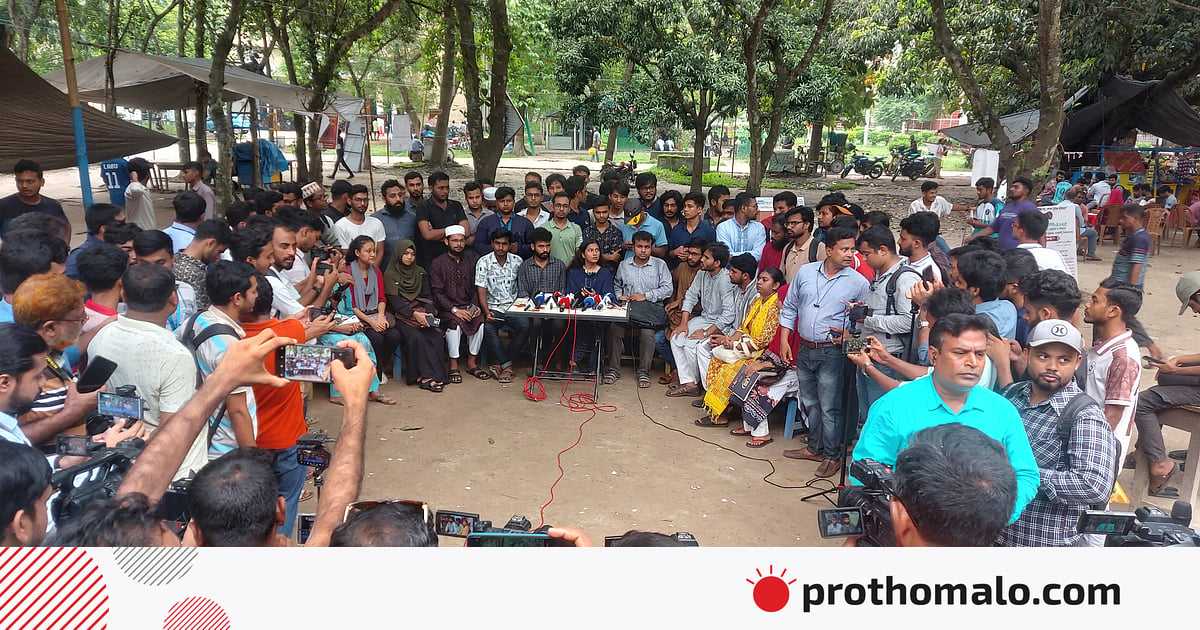 সংবাদ সম্মেলনে লিখিত বক্তব্য পাঠ করেন ‘সর্বজনীন শিক্ষার্থী সংসদ’ প্যানেলের ভিপি প্রার্থী তাসিন খান। এ সময় উপস্থিত ছিলেন রাকসু ফর র্যাডিক্যাল চেঞ্জ ও ইসলামী আন্দোলন বাংলাদেশ-সমর্থিত প্যানেলের ভিপি প্রার্থী, কেন্দ্রীয় ছাত্র সংসদসহ বিভিন্ন হল ও সিনেট প্রতিনিধি নির্বাচনের স্বতন্ত্র প্রার্থীরা।
