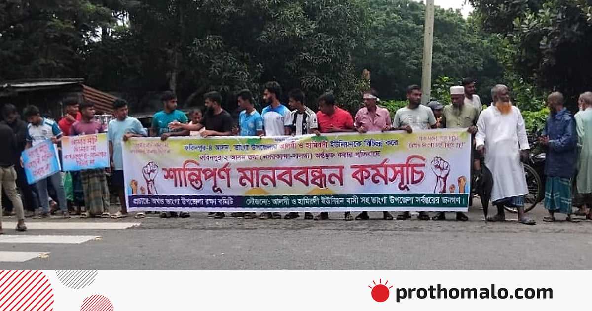 ফরিদপুর-৪ আসন থেকে ভাঙ্গা উপজেলার আলগী ও হামিরদী ইউনিয়ন বাদ দিয়ে ফরিদপুর-২ আসনের সঙ্গে যুক্ত করার সিদ্ধান্তের প্রতিবাদে মানববন্ধন কর্মসূচি পালন করেন এলাকাবাসী। এতে দুই ইউনিয়নের সাধারণ মানুষসহ ভাঙ্গা উপজেলার বিভিন্ন শ্রেণি–পেশার মানুষ অংশ নেন। কর্মসূচিটি আয়োজন করে ‘অখণ্ড ভাঙ্গা রক্ষা কমিটি’।