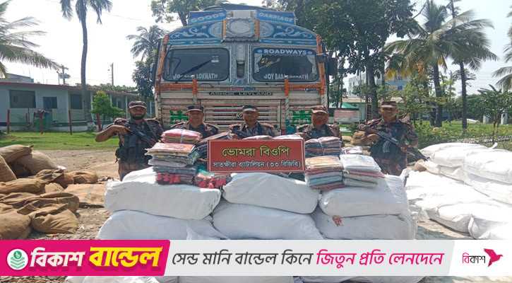 অপরদিকে, বিজিবি জানায়, তাদের হাতে জব্দকৃত পণ্যের মধ্যে রয়েছে ২০ হাজার কেজি ভারতীয় খইল, ২ হাজার ৪৮৯ পিস অতি উন্নতমানের শাড়ি, ২ হাজার ১০০ পিস উন্নতমানের শাড়ি, ৩৫৮ পিস অতি উন্নমানের থ্রি-পিস, ১৫০ পিস উন্নতমানের থ্রি-পিস, ২০৫ পিস ব্লাউজ ও ১৫০ বোতল ফেনসিডিল। এসময় ভারতীয় ট্রাক থেকে ওই মালামাল বাংলাদেশি দুটি ট্রাকে তোলার সময় তিনটি ট্রাকই জব্দ করা হয়।