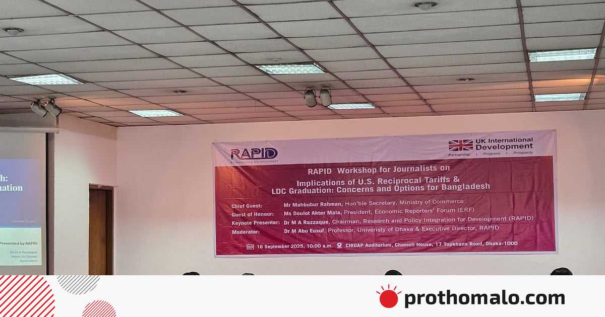 বেসরকারি গবেষণাপ্রতিষ্ঠান র্যাপিড আয়োজিত যুক্তরাষ্ট্রের পাল্টা শুল্ক ও এলডিসি উত্তরণবিষয়ক কর্মশালায় এ কথা বলেন বাণিজ্যসচিব মাহবুবুর রহমান। রাজধানীর সিরডাপ মিলনায়তনে আজ মঙ্গলবার এই কর্মশালা অনুষ্ঠিত হয়।