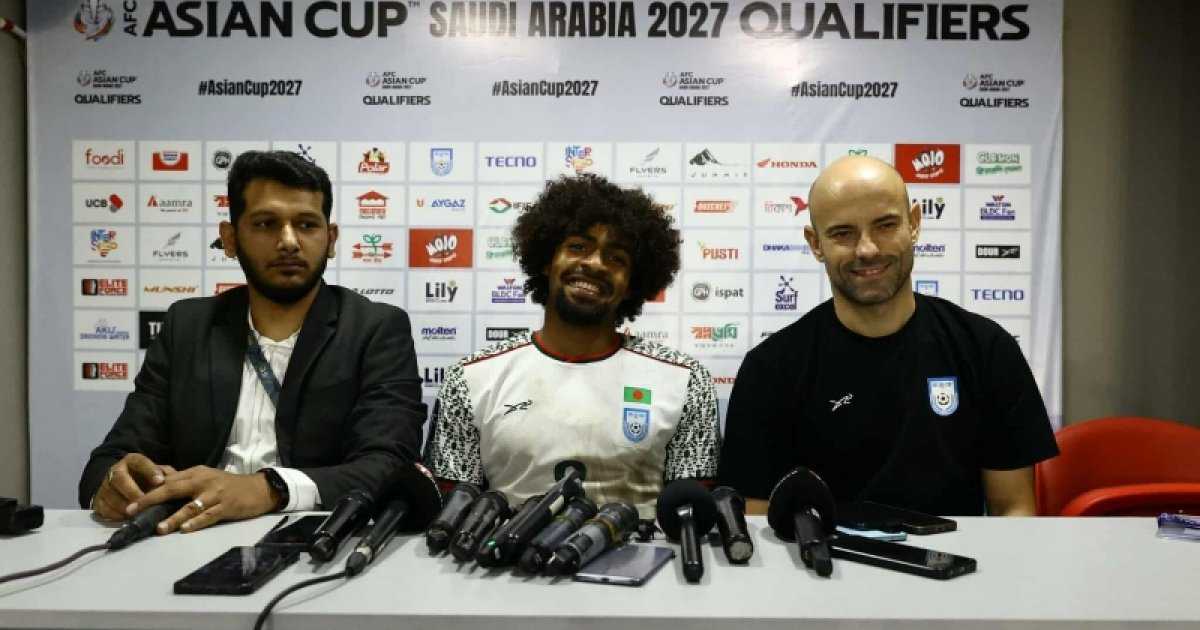 ম্যাচশেষে সংবাদ সম্মেলনে মোরসালিন এলেন না, এলেন হামজা চৌধুরী।