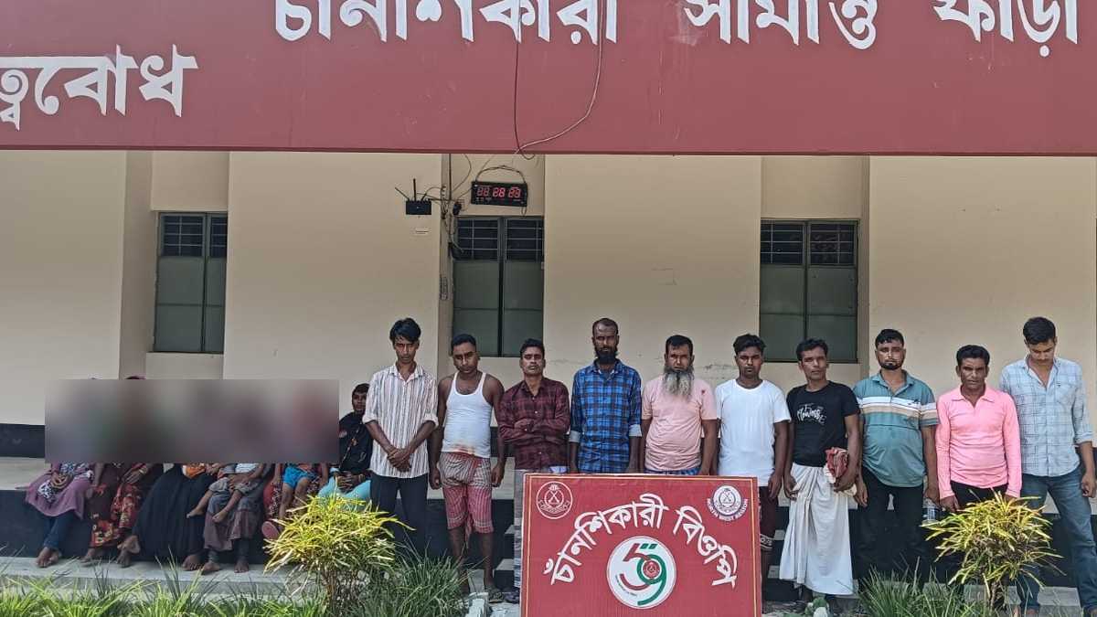 আটক হওয়া ব্যক্তিরা হলেন— চাঁপাইনবাবগঞ্জ সদর উপজেলর নরেন্দ্রপুর চরমহিষপুর গ্রামের আমজাদ আলীর ছেলে লুৎফর রহমান (৩৮), রাজশাহী জেলার গোদাগাড়ি উপজেলার চরআষাড়িয়াদহ গ্রামের সালাম শেখের ছেলে আসাদুল (৩৩), গোগ্রাম শ্রীরামপুর গ্রামের মনিরুল ইসলামের ছেলে দেলোয়ার হোসেন (২৮), মালকামলা গ্রামের বদরুজ্জামানের ছেলে হযরত আলী (২৮), যশোরের চৌগাছা উপজেলার সুখপুকুরিয়া আড়সিংরী গ্রামের রওশেদ আলী মন্ডলের ছেলে আরিফ হোসেন (৩৮), রাজবাড়ী জেলার বালিয়াকান্দি উপজেলার চরখি কমলা গ্রামের নুরুল ইসলামের ছেলে আব্দুর রহমান (৩৭), মাগুরা জেলার সদর উপজেলার গাংনী নতুনগ্রামের মৃত শিবু দাস শিকদারের ছেলে সয়ন সিকদার (২২), খুলনা জেলার সদর উপজেলার পুকুরজানা ঘোপখালী গ্রামের গোলাম মোস্তফার মেয়ে জান্নাতুল ফেরদৌস (২৬), ঢাকা জেলার আশুলিয়া থানার নবীনগর গ্রামের বাবুল হোসেনের মেয়ে সুমি (২৫), সুজনের শিশু সন্তান আব্দুল্লাহ (২ মাস), কুড়িগ্রাম জেলার ফুলবাড়ি উপজেলা হাজিপাড়া দাসিয়াছড়া কালিরহাট হাজিপাড়া গ্রামের এমবি আব্দুল মোতালেবের ছেলে মেহেদুল ইসলাম (২৩), হোসেন আলীর ছেলে এবি আব্দুল মোতালেব (৪৭), শামছ উদ্দীন হকের ছেলে মোকছেদুল হক (৩০), মুন্নাফ খন্দকারের মেয়ে মুর্শিদা বিবি (৩৭), আবু তাহের খন্দকারের মেয়ে শরিফা বেগম (২৫), মোকছেদুল হকের ছেলে রমজান হক (০৩), নড়াইল জেলার কালীয়া উপজেলার কতুয়ালী গ্রামের দোলা মিয়া শেখের মেয়ে রেহেনা বেগম (৫৫), ময়মনসিংহ জেলার ফুলপুর উপজেলার গড়পয়ারী গ্রামের গিয়াস উদ্দীনের মেয়ে শাপলা আক্তার (২১) এবং মারুফ হোসেনের মেয়ে রুহী আক্তার (০২)।