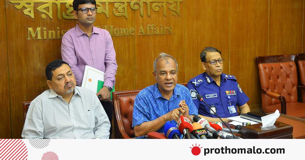 স্বরাষ্ট্র উপদেষ্টা আজ রোববার দুপুরে সচিবালয়ে স্বরাষ্ট্র মন্ত্রণালয়ের সম্মেলনকক্ষে আইনশৃঙ্খলাসংক্রান্ত কোর কমিটির সভা শেষে সাংবাদিকদের ব্রিফিংকালে এ কথা জানান। স্বরাষ্ট্র মন্ত্রণালয়ের সংবাদ বিজ্ঞপ্তিতে এই তথ্য জানানো হয়।