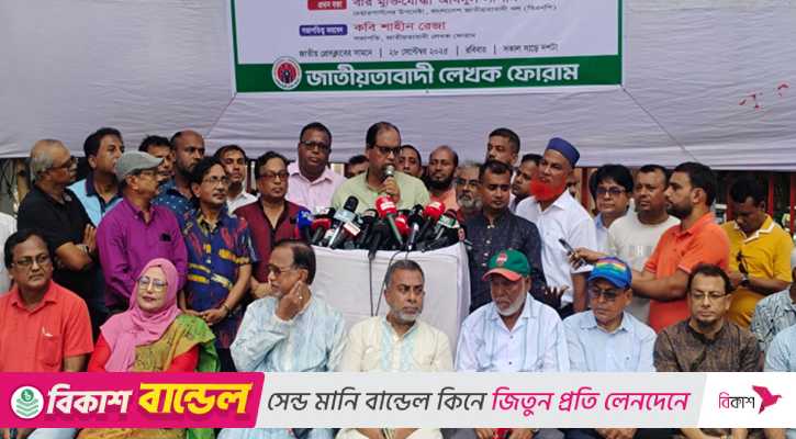 রোববার (২৮ সেপ্টেম্বর) জাতীয় প্রেস ক্লাবের সামনে জাতীয়তাবাদী লেখক ফোরামের উদ্যোগে আয়োজিত এক সমাবেশে প্রধান অতিথির বক্তব্যে তিনি এসব কথা বলেন।
