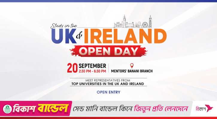 মেন্টরস' স্টাডি এব্রোড আয়োজিত এই ওপেন ডে-তে যুক্তরাজ্য ও আয়ারল্যান্ডের স্বনামধন্য বিভিন্ন বিশ্ববিদ্যালয় অংশ নেবে। আগামী ২০ সেপ্টেম্বর দুপুর থেকে সন্ধ্যা পর্যন্ত রাজধানীর বনানীতে অবস্থিত মেন্টরস’ স্টাডি এব্রোডের ব্রাঞ্চে আয়োজনটি অনুষ্ঠিত হবে।